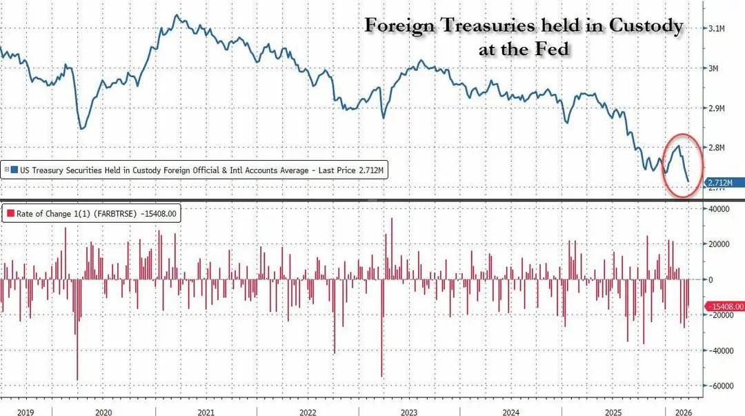 纽约联储托管账户数据表露,番邦央行自2月25日当周起连络五周减握好意思国国债,悉数抛售限度逾越900亿好意思元,握仓降至2012年以来最低点。值得扫视标是,抛售力度在终末三周领路加快,标明跟着壅塞握续,列国央行的流动性需求愈发紧要。