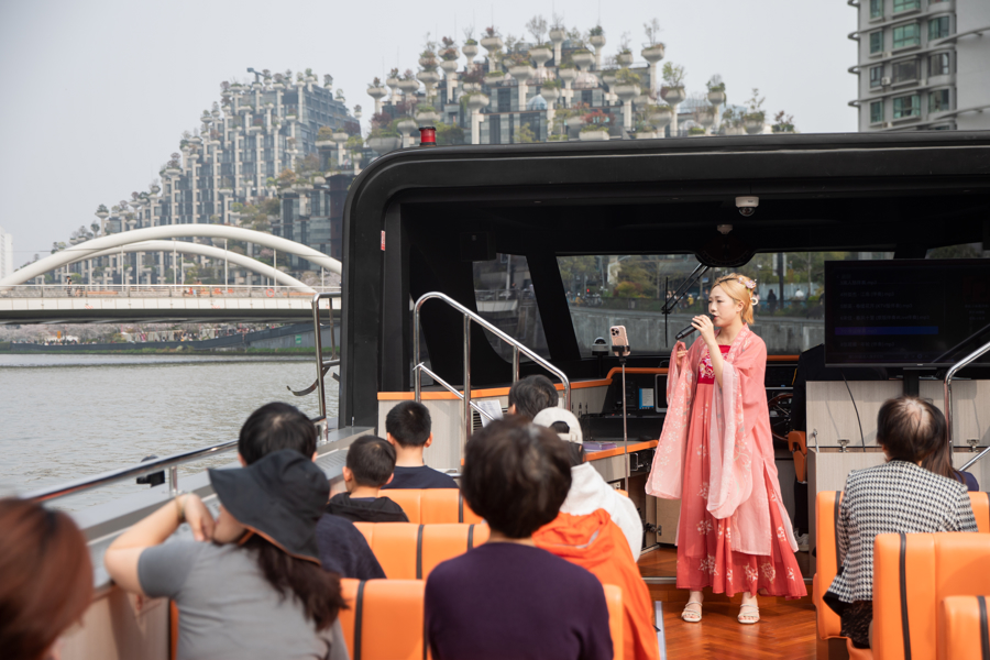 本届樱花季调动推出“春日水岸联动演艺航班”,让演艺空间在千树河畔步谈与苏州河游船之间目田流动。演艺航班以春日国风歌曲为干线,竣事船上与岸上的歌声同步互动。献技共安排四场,时候定于4月4日至6日及4月11日。