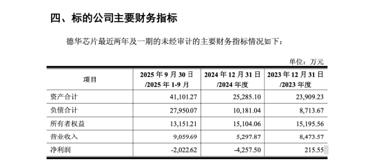 时隔约九年,明阳智能选择将这家芯片公司重新纳入上市公司版图。只是此时的德华芯片,财务状态并不轻松。未经审计数据显示,2023年、2024年公司分别实现营业收入8473.57万元、5297.87万元,净利润215.55万元、-4257.50万元;2025年前三季度,营业收入9059.69万元,净利润仍为-2022.62万元,持续亏损。