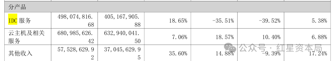 从业务结构看,IDC奇迹收入4.98亿元,同比大降35.51%,是营收下滑的主要连累项;云主机及相干奇迹收入6.81亿元,同比增长18.57%,成为业务增长的中枢支抓。