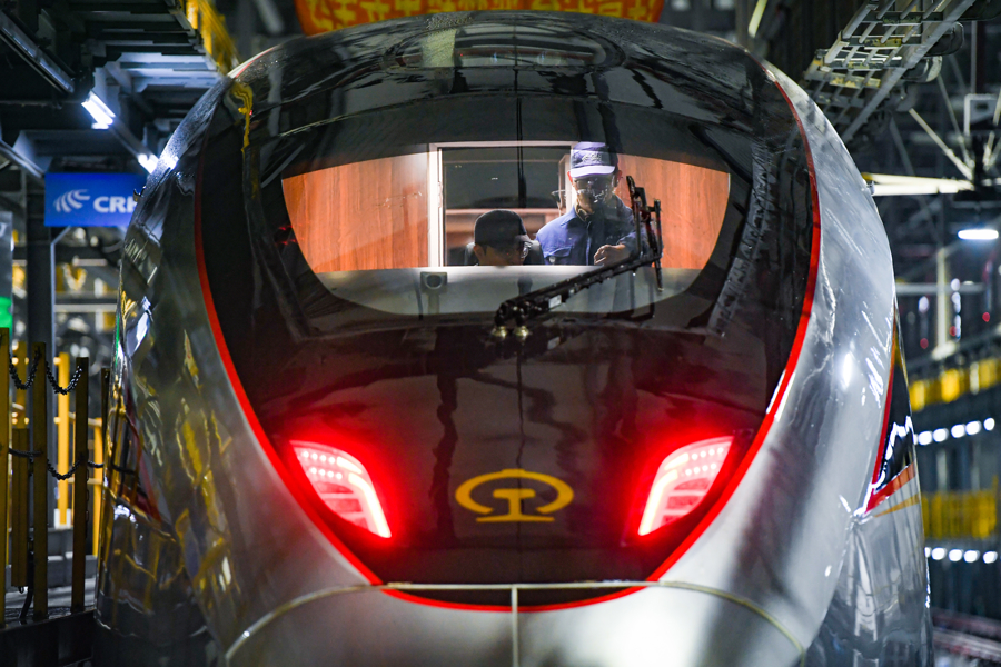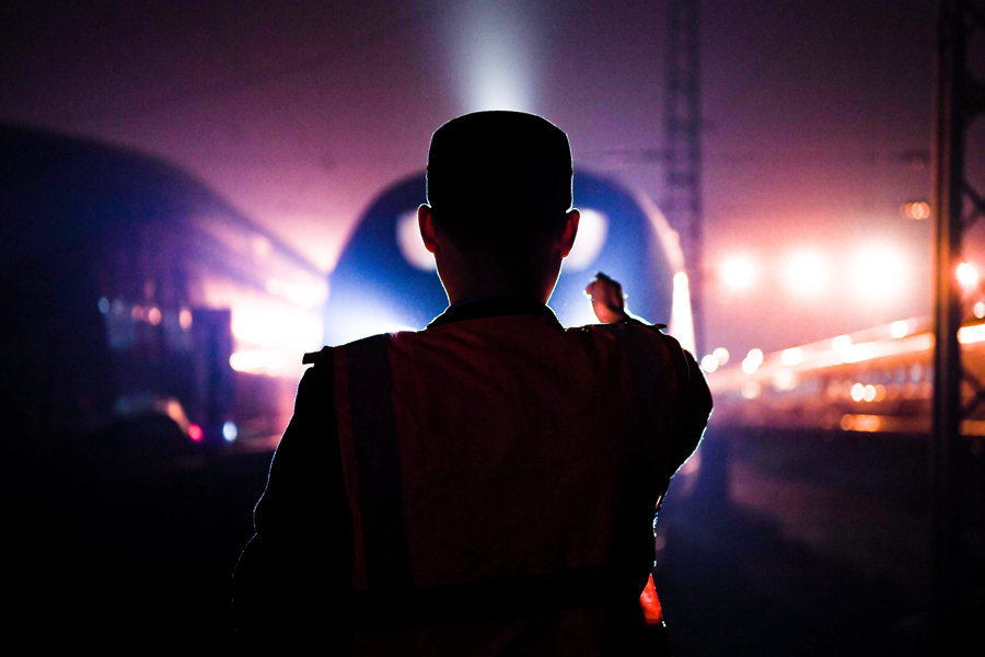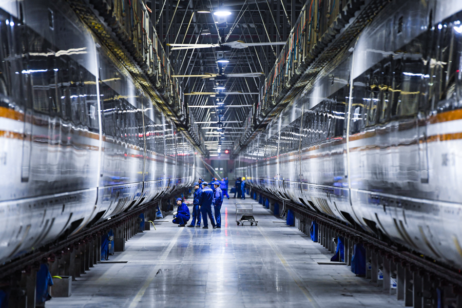 夜深天寒,城市已沉入静谧的酣眠中,虹桥动车所检修库的灯光却早已刺破厚重夜色,车间内一派繁忙而有序的景象。