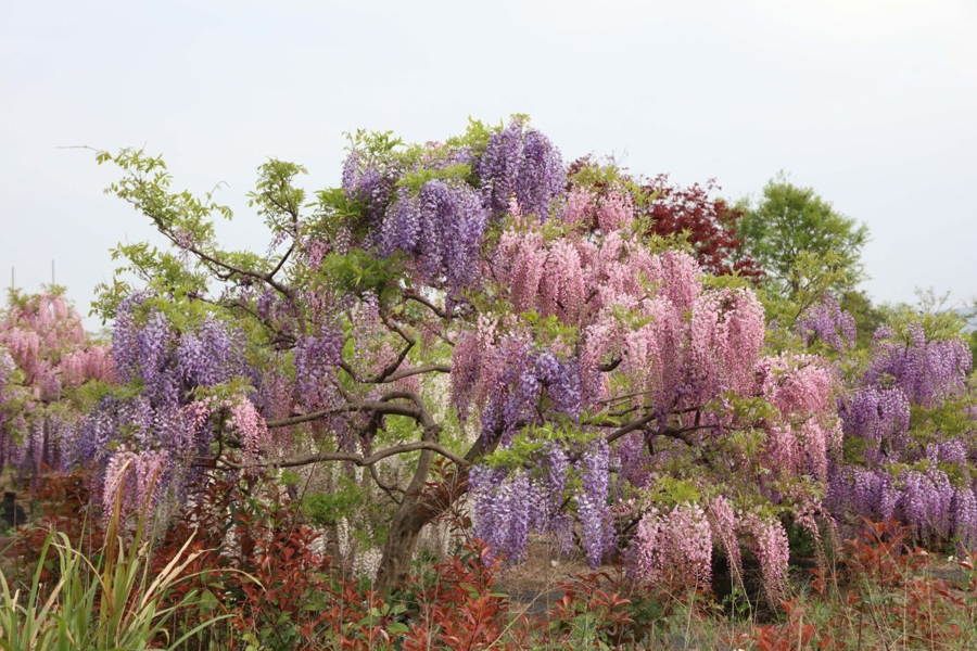 3月中旬至5月初,则是杜鹃紫藤争艳的时刻。超大型锦绣杜鹃和紫藤将形成视觉焦点。其中紫藤汇集了数十个优良品种,紫色花穗如瀑布倾泻。