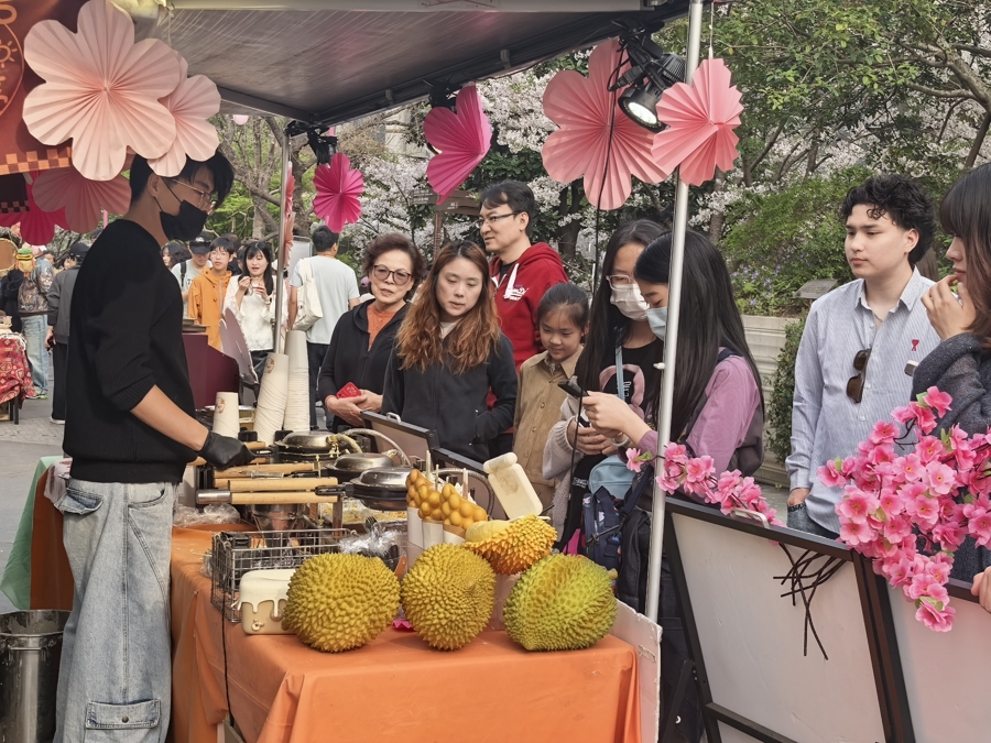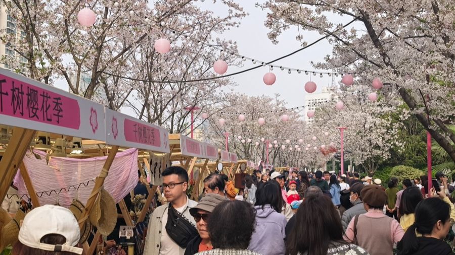 樱花市集客流如织。