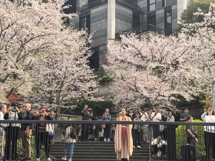 中外旅客共赏烂漫樱花